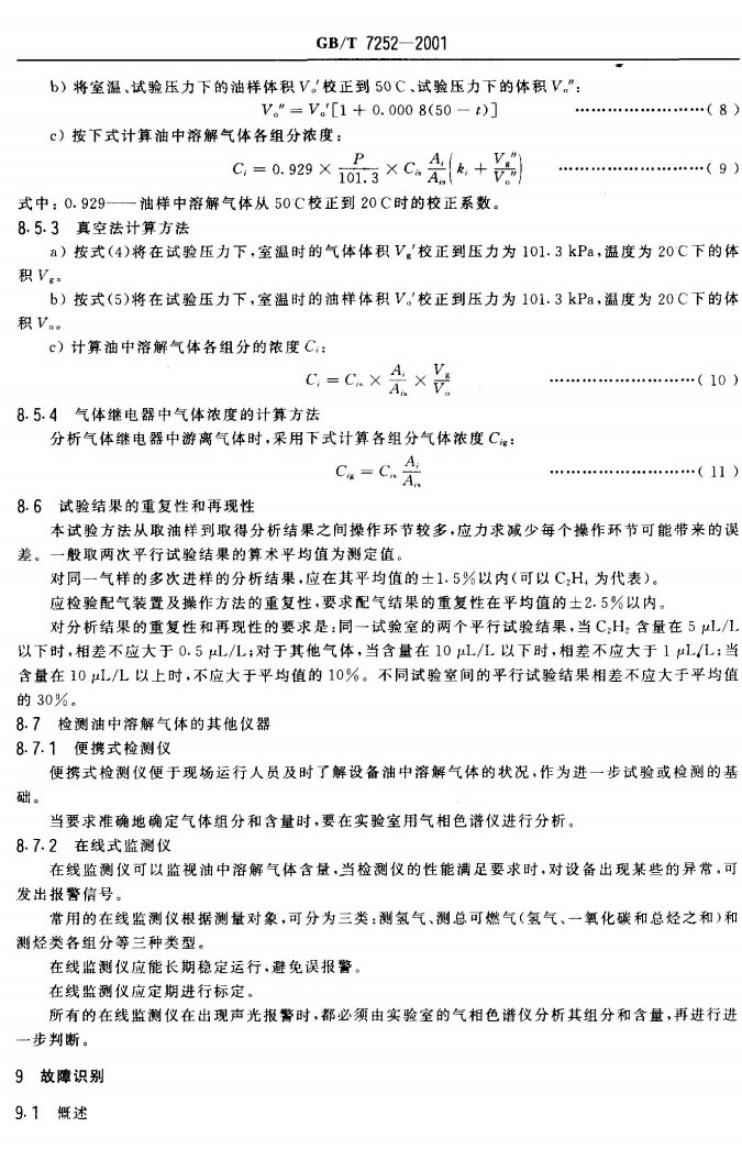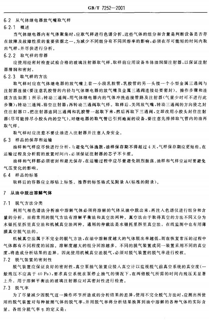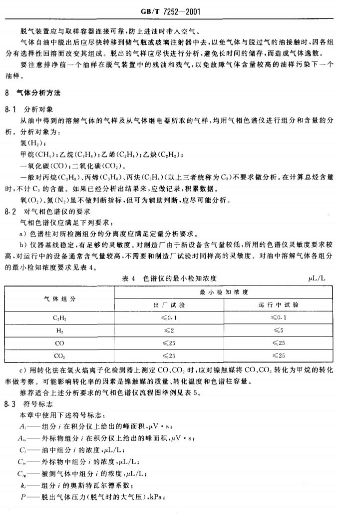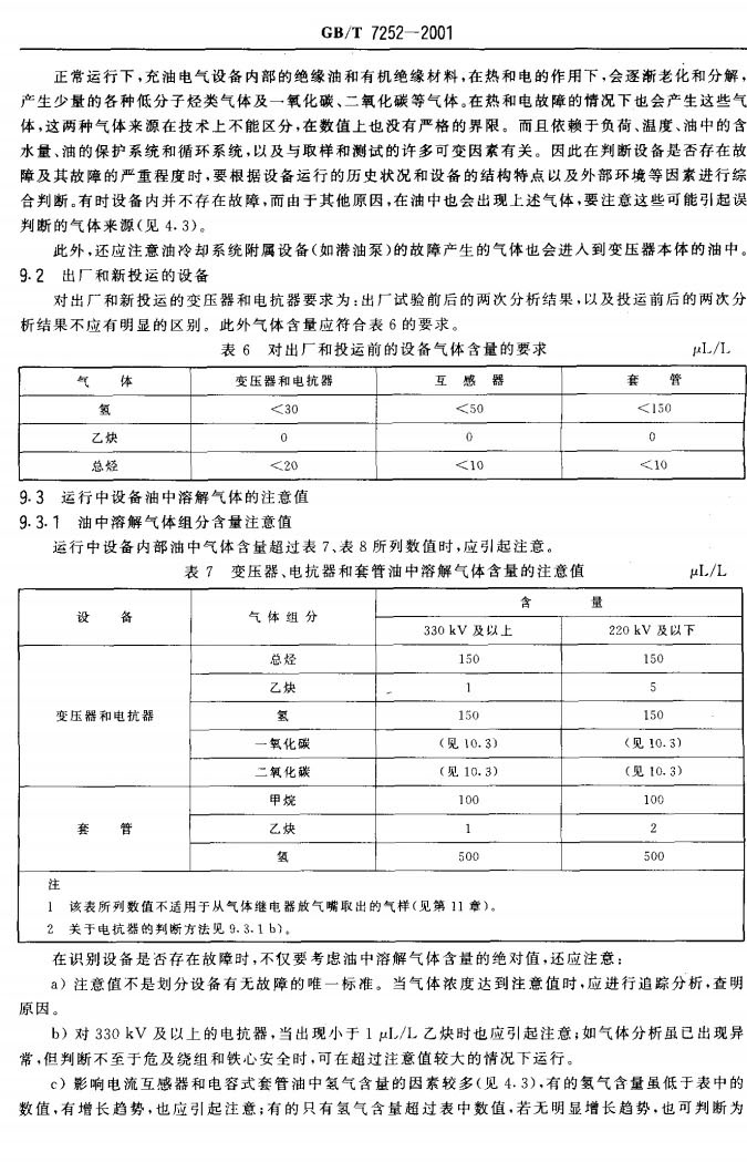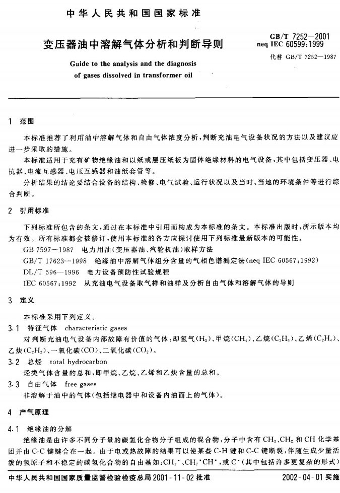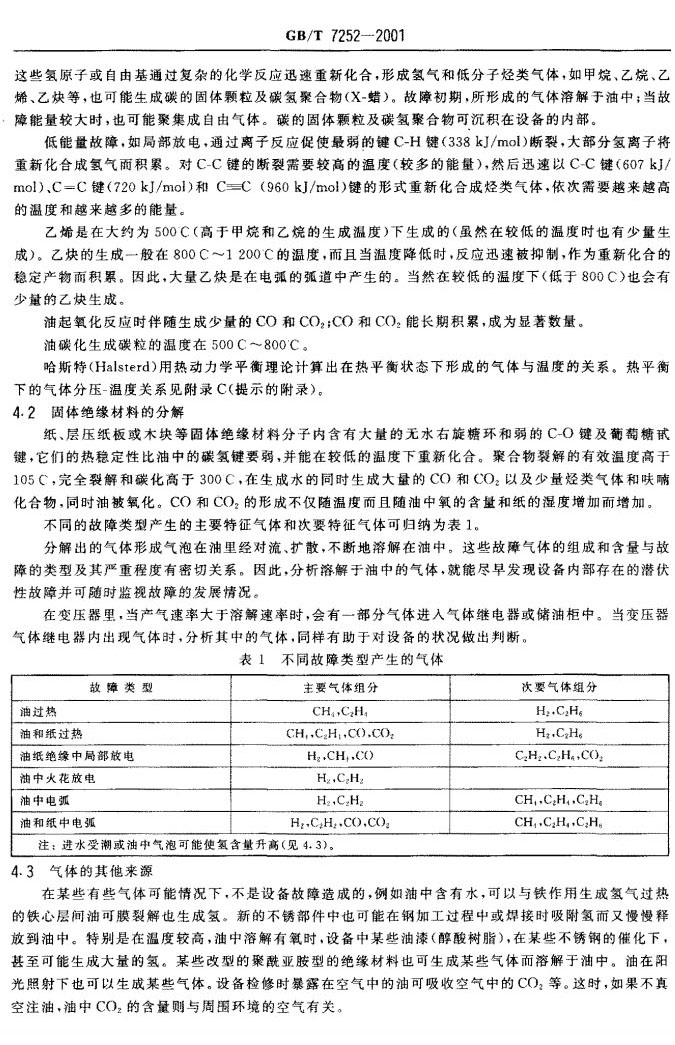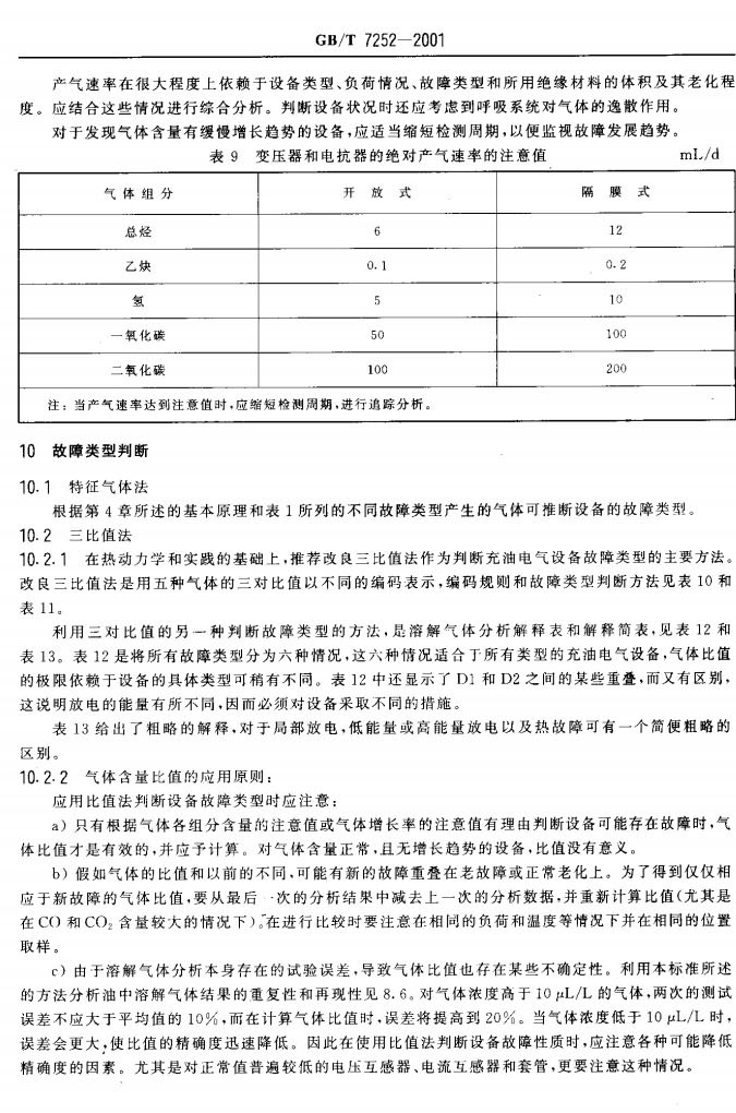 GBT 7252-2001 變壓器油中溶解氣體分析和判斷導則